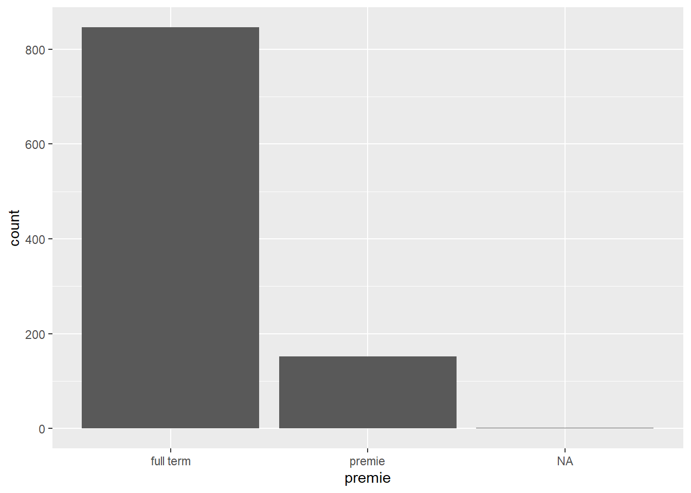 ggplot(ncbirths, aes(premie)) + geom_bar()